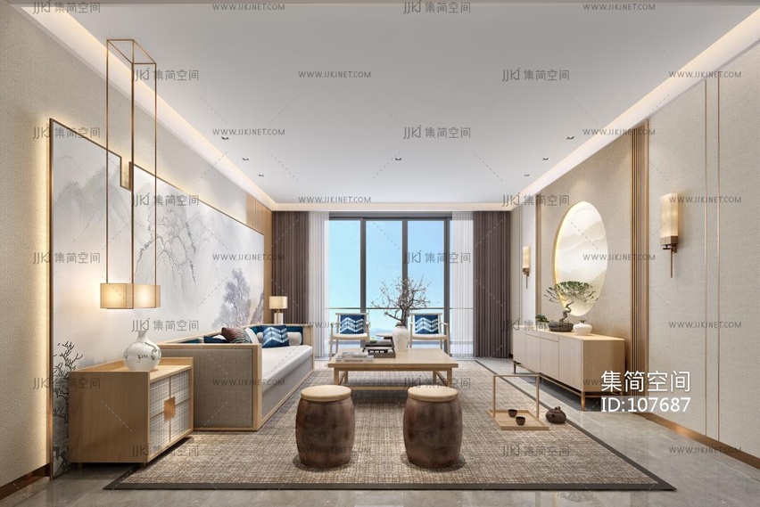 新中式客厅 3d模型下载 [模型ID:107687]