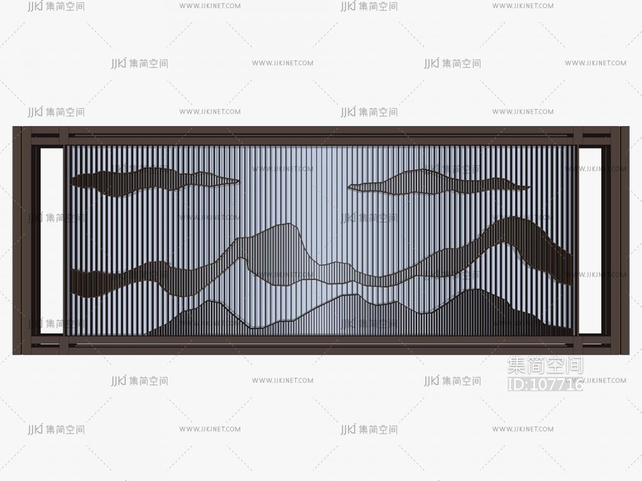 新中式山脉形状背景墙,格栅花格,屏风 su草图模型下载 [模型ID:107716]