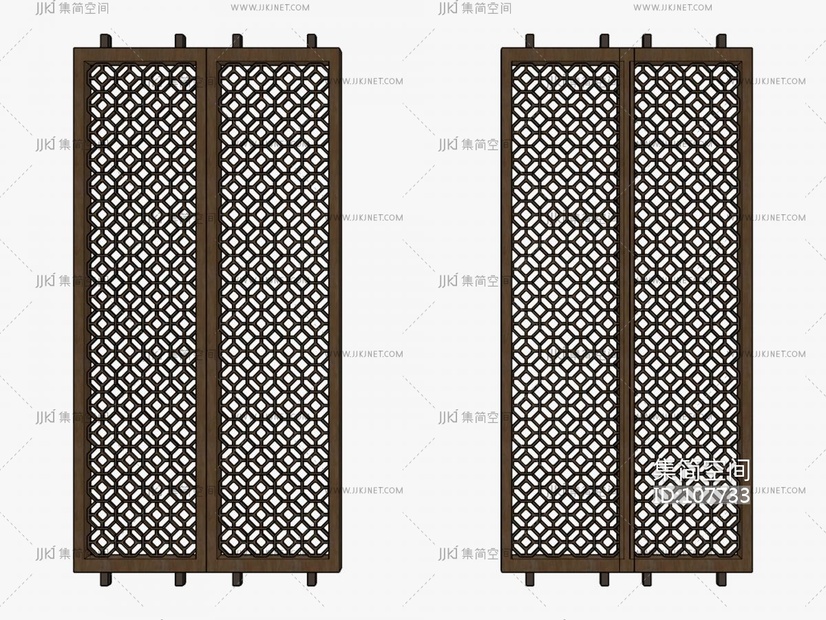 新中式屏风隔断木花格 su草图模型下载 [模型ID:107733]