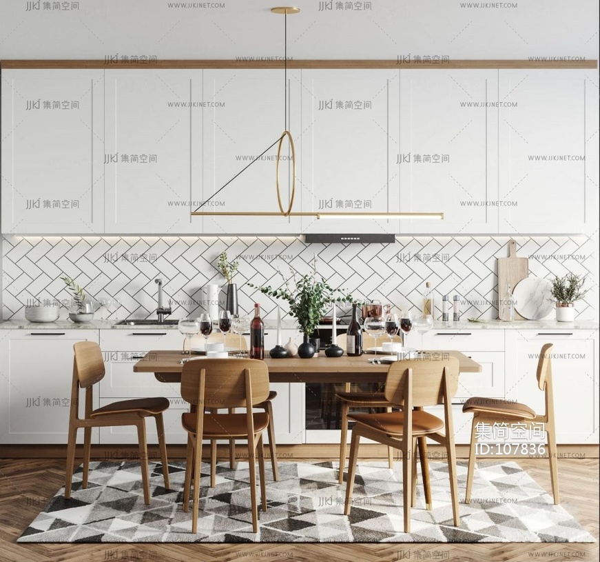 北欧原木餐桌椅 3d模型下载 [模型ID:107836]