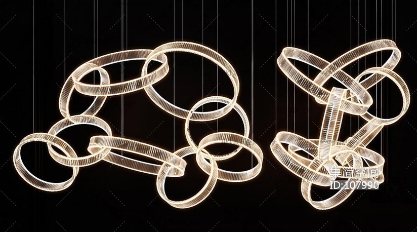 03现代圆环异形水晶吊灯吊饰 3d模型下载 [模型ID:107990]