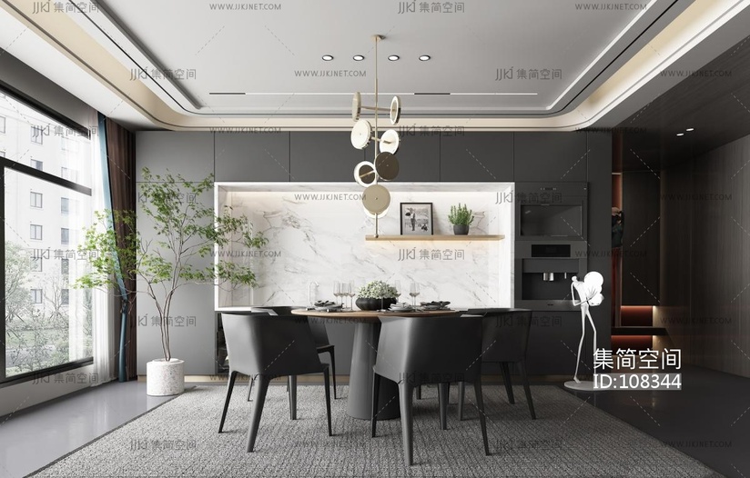 欧式古典餐厅古典雕花餐桌椅 3D模型3d模型下载