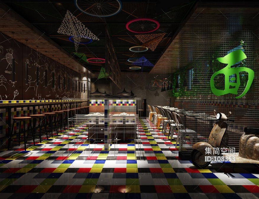 工业LOFT餐厅 3d模型下载 [模型ID:108353]