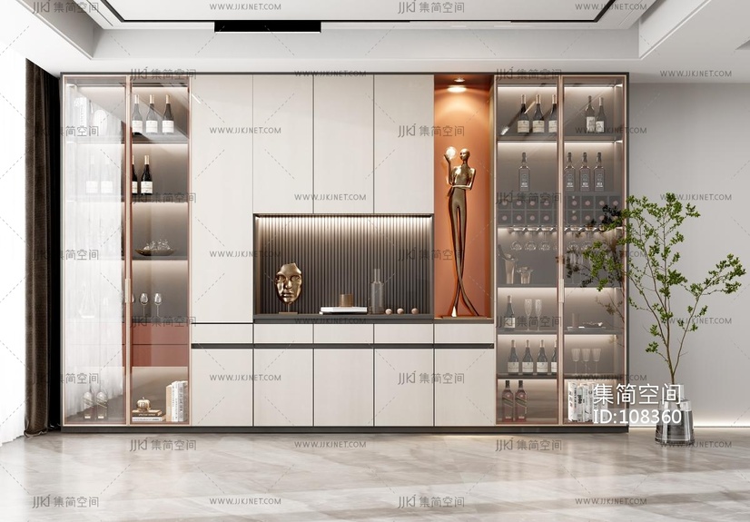 现代酒柜,酒架, 3d模型下载 [模型ID:108360]
