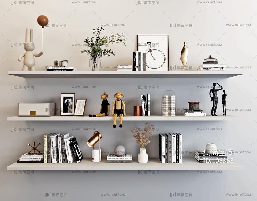 现代书籍花瓶摆件 3d模型下载 [模型ID:108363]