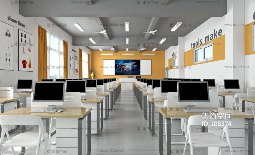 现代计算机教室 3d模型下载 [模型ID:108374]