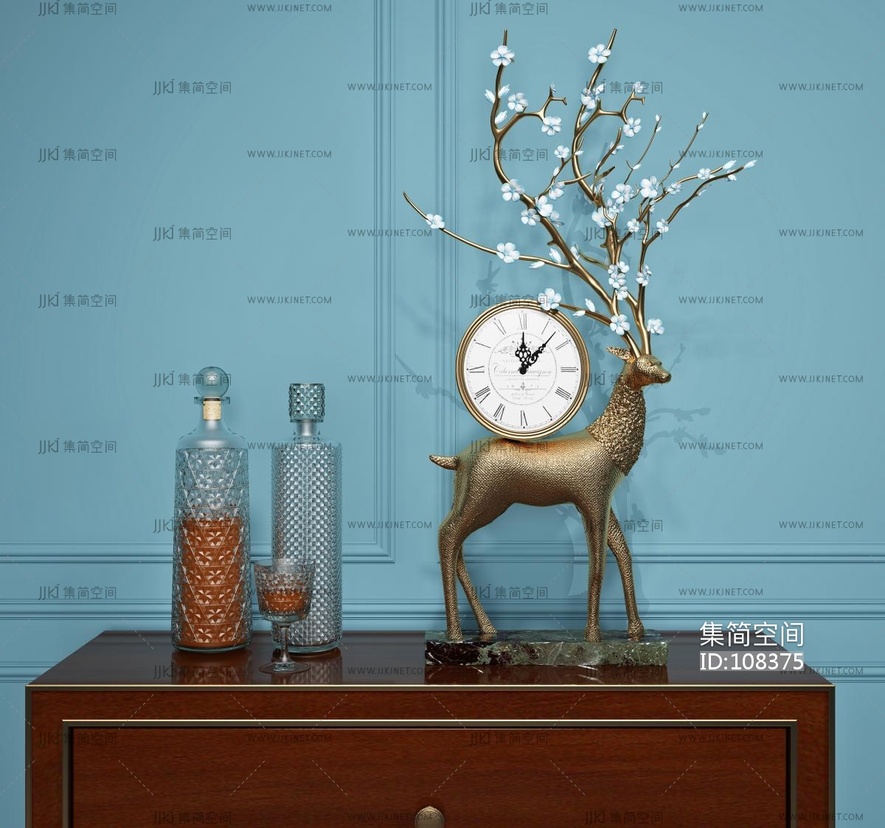 复古法式摆件组合_绿城玫瑰园会所_端景台_花艺_屏风3D模型3d模型下载