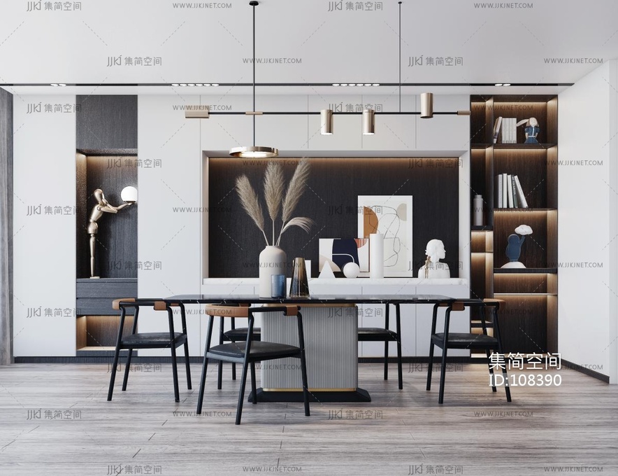 现代极简餐厅 3d模型下载 [模型ID:108390]