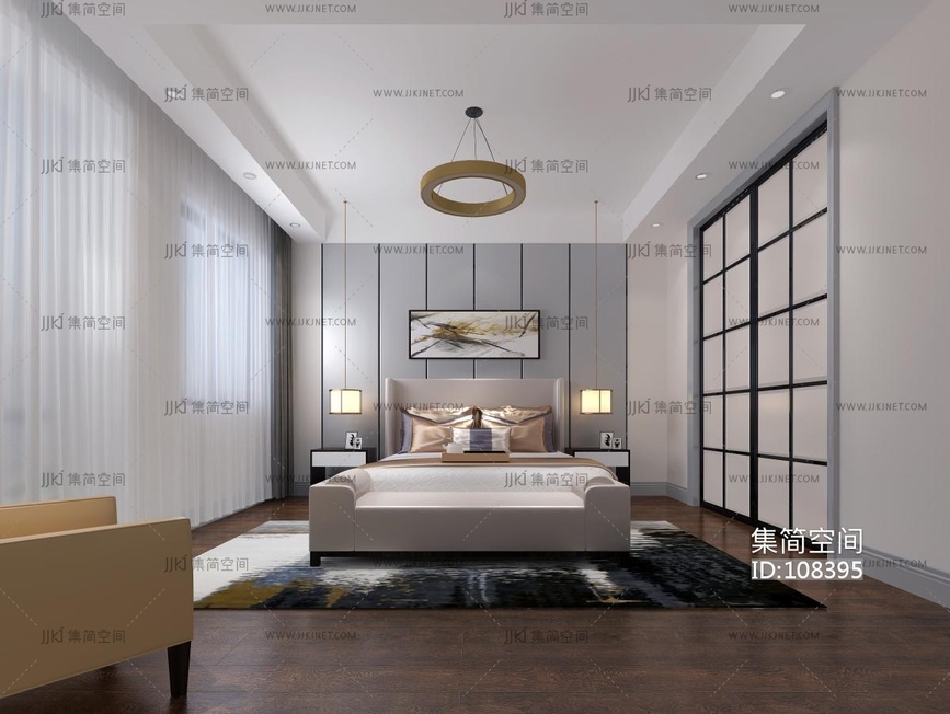 现代极简卧室 3d模型下载 [模型ID:108395]