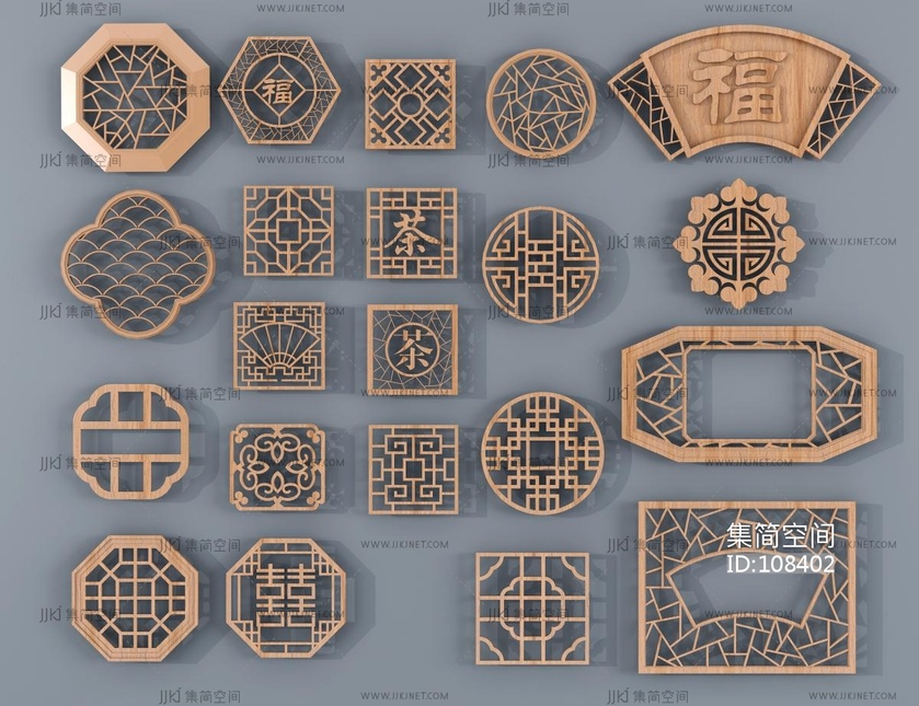 中式花格,花窗 3d模型下载 [模型ID:108402]