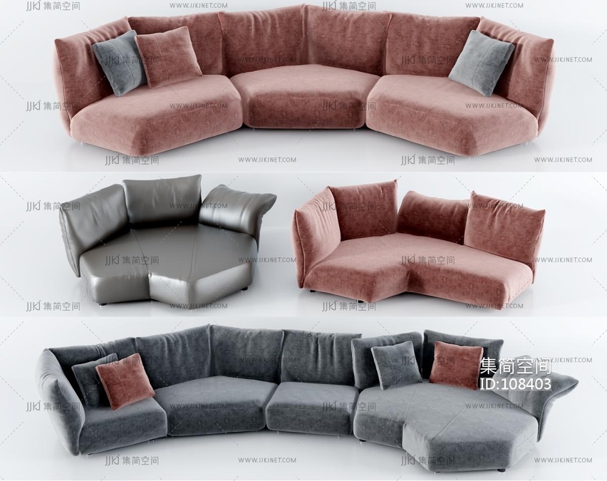 现代布艺多人沙发, 3d模型下载 [模型ID:108403]