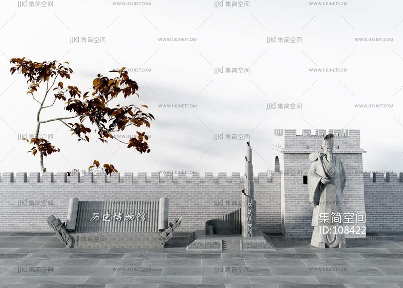 中式历史博物馆长城雕像,雕像,塑像 3d模型下载 [模型ID:108422]