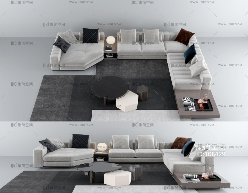 现代沙发茶几组合, 3d模型下载 [模型ID:108429]