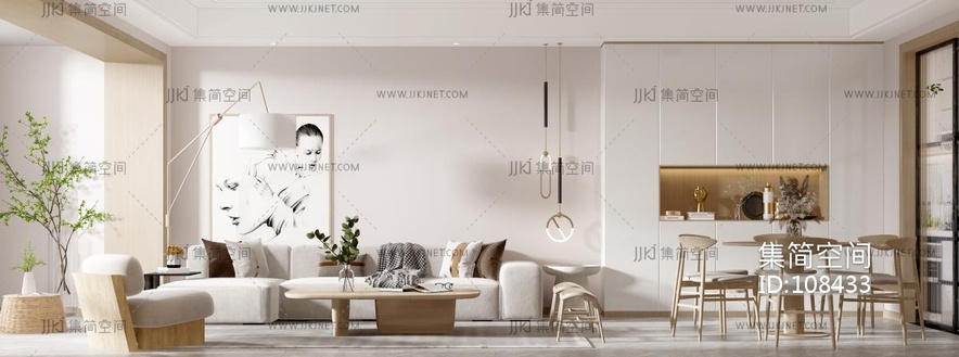 北欧客厅餐厅, 3d模型下载 [模型ID:108433]