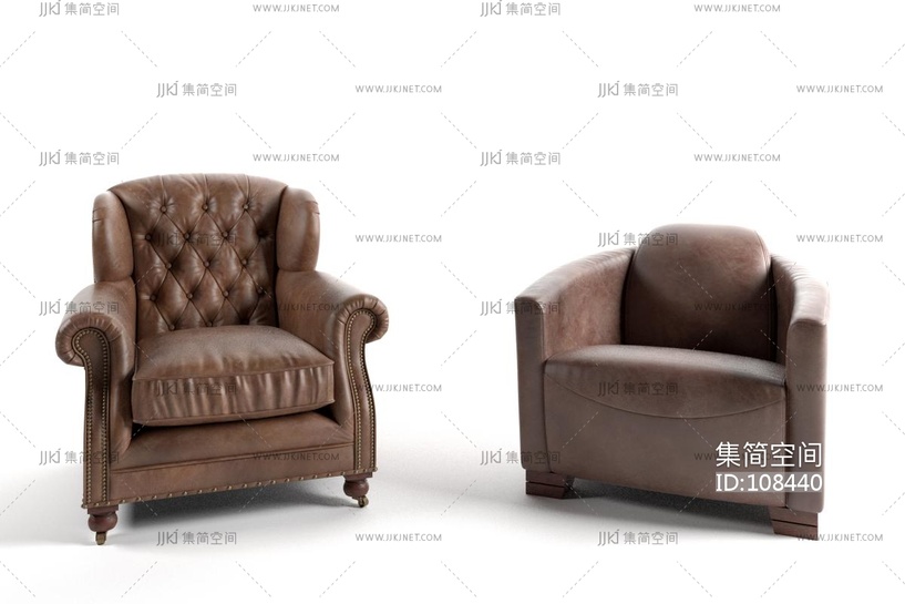 美式单人皮革沙发, 3d模型下载 [模型ID:108440]