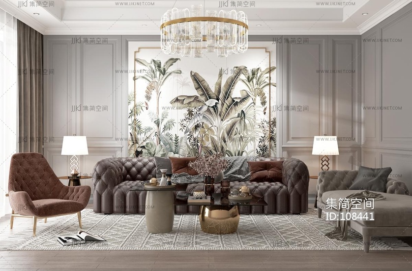 美式家居客厅 3d模型下载 [模型ID:108441]
