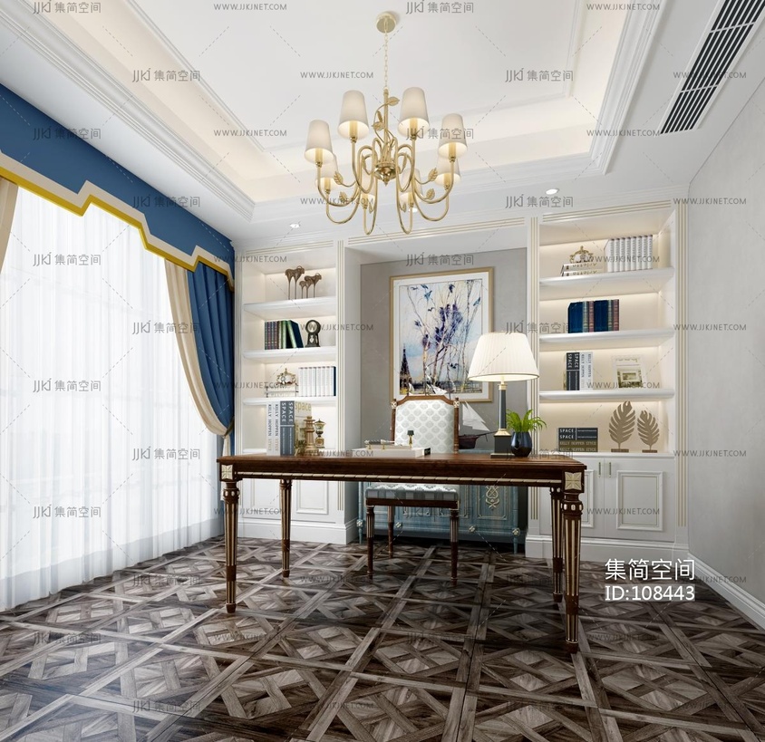 美式法式书房, 3d模型下载 [模型ID:108443]
