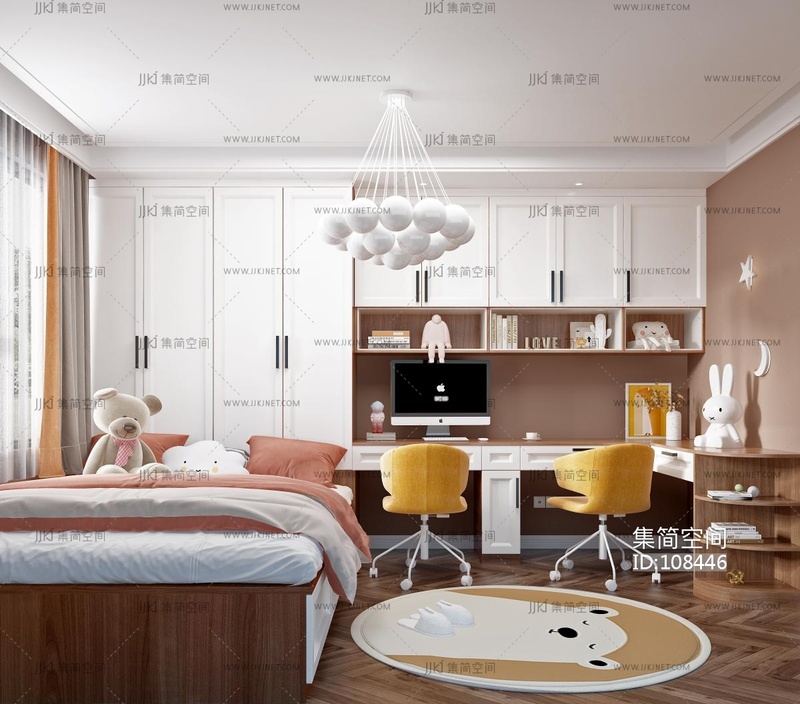 07-现代儿童房,儿童床学习桌-3d模型下载