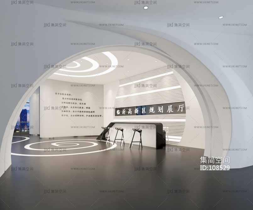 现代办公展厅大厅前台服务台 3d模型下载 [模型ID:108529]