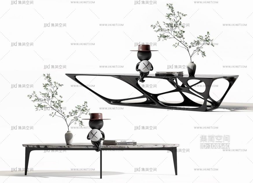 02现代异形花瓶茶几组合 3d模型下载 [模型ID:108540]