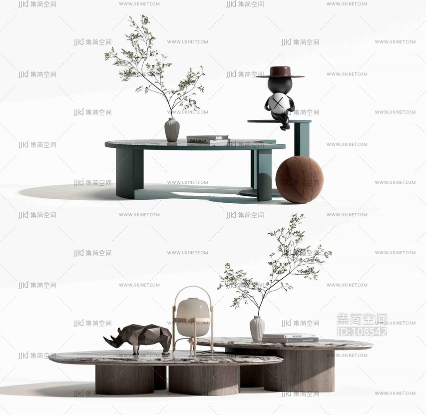 04现代茶几摆件组合 3d模型下载 [模型ID:108542]