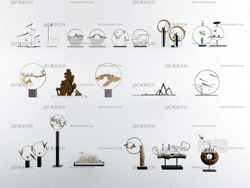 新中式轻奢摆件, 3d模型下载 [模型ID:108665]