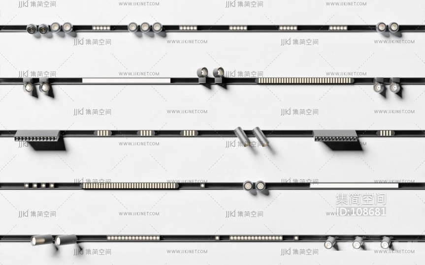 02现代磁吸射灯轨道灯组合 3d模型下载 [模型ID:108681]