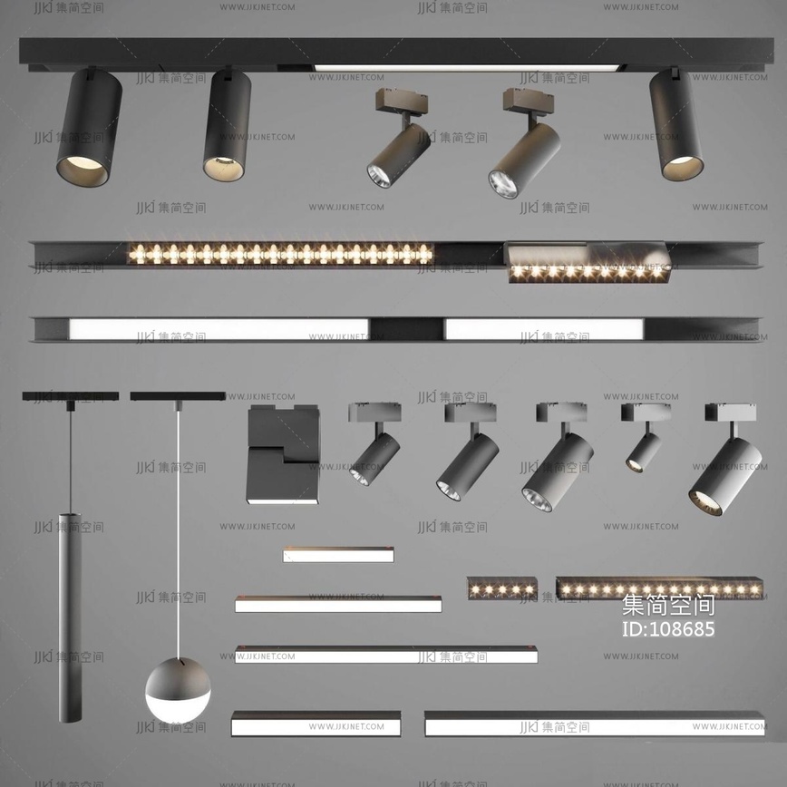 05-现代射灯_明装射灯_轨道射灯_磁吸射灯_舞台灯3D模型3d模型下载