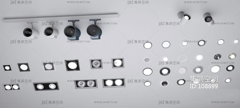 现代筒灯射灯组合3d模型下载