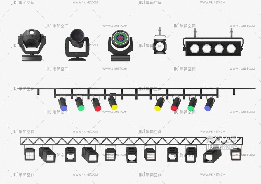 16现代舞台灯射灯镭射灯组合 3d模型下载 [模型ID:108704]