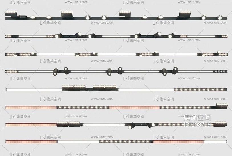 21现代磁吸铁艺射灯轨道灯组合 3d模型下载 [模型ID:108709]