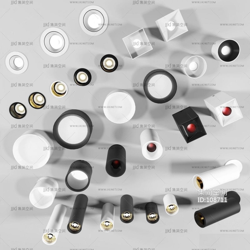 现代射灯明装筒灯射灯组合 3d模型下载 [模型ID:108711]