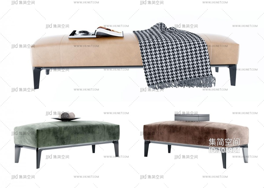 现代布艺沙发凳,布艺床尾凳 3d模型下载 [模型ID:108984]