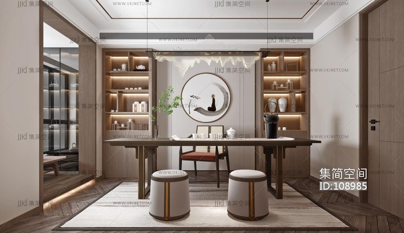 现代书房 书桌椅 壁柜 挂画 吊灯 书 盆栽 摆件3d模型下载