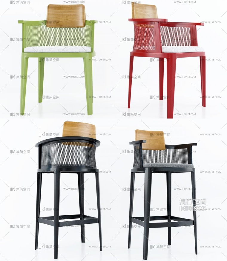 现代轻奢网格单椅,吧椅 3d模型下载 [模型ID:108998]