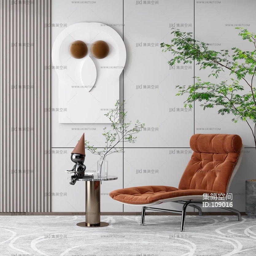 现代躺椅,休闲座椅,椅子圆形边几花瓶 3d模型下载 [模型ID:109016]