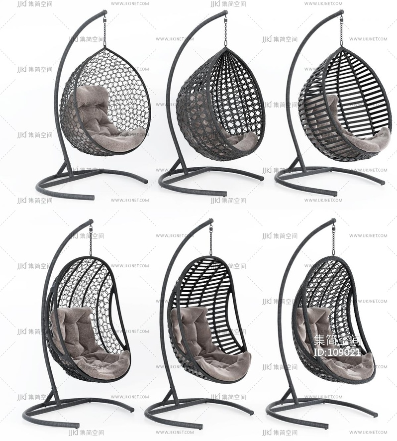 北欧户外藤编编织吊椅腾椅组合 3d模型下载 [模型ID:109021]