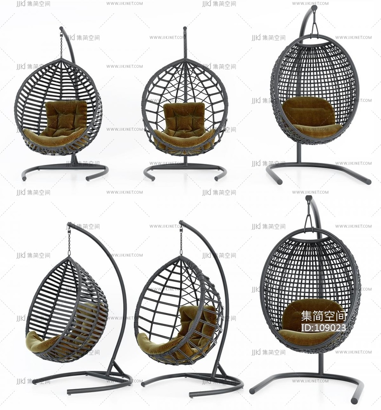现代户外藤编编织吊椅腾椅组合 3d模型下载 [模型ID:109023]