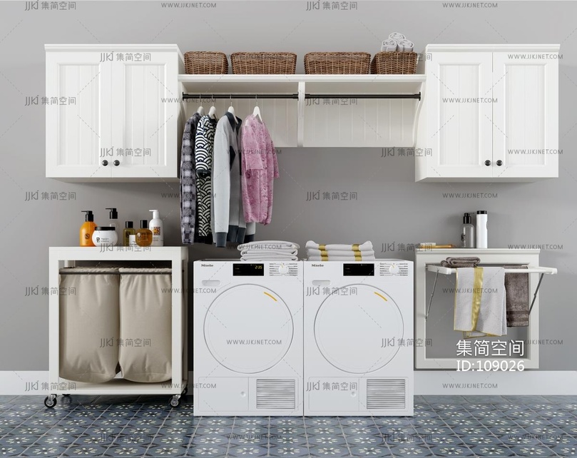现代浴室柜,洗衣机阳台 3d模型下载 [模型ID:109026]