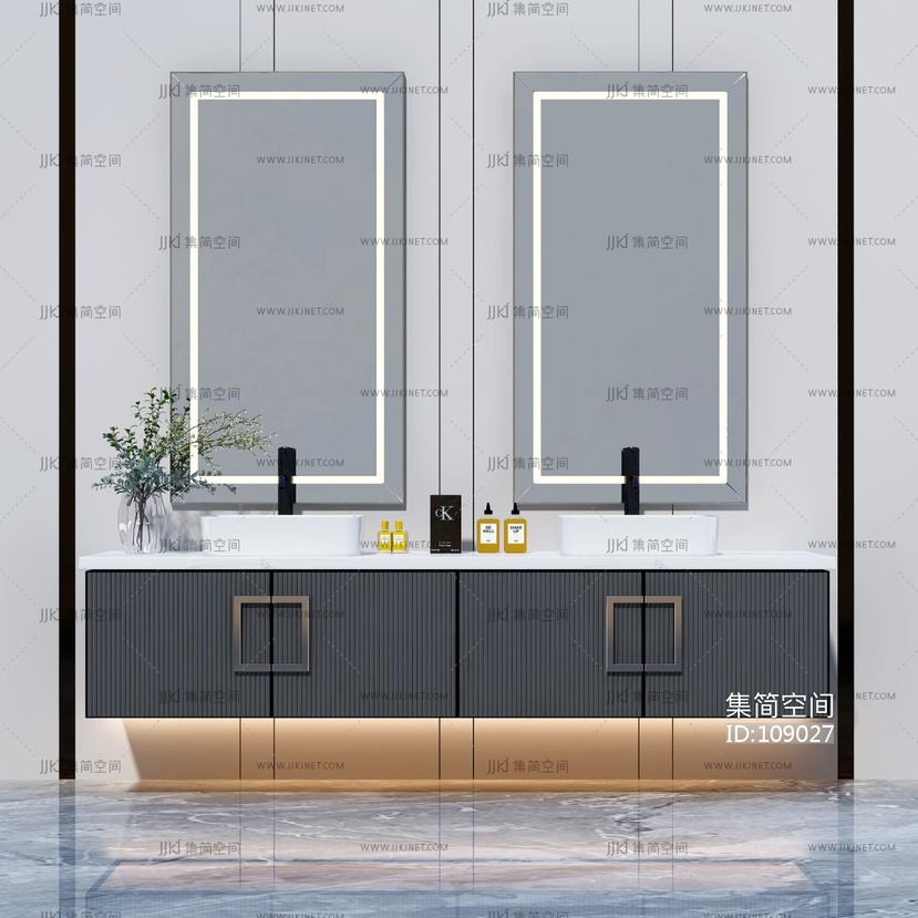 新中式浴室柜,现代洗手台, 3d模型下载 [模型ID:109027]