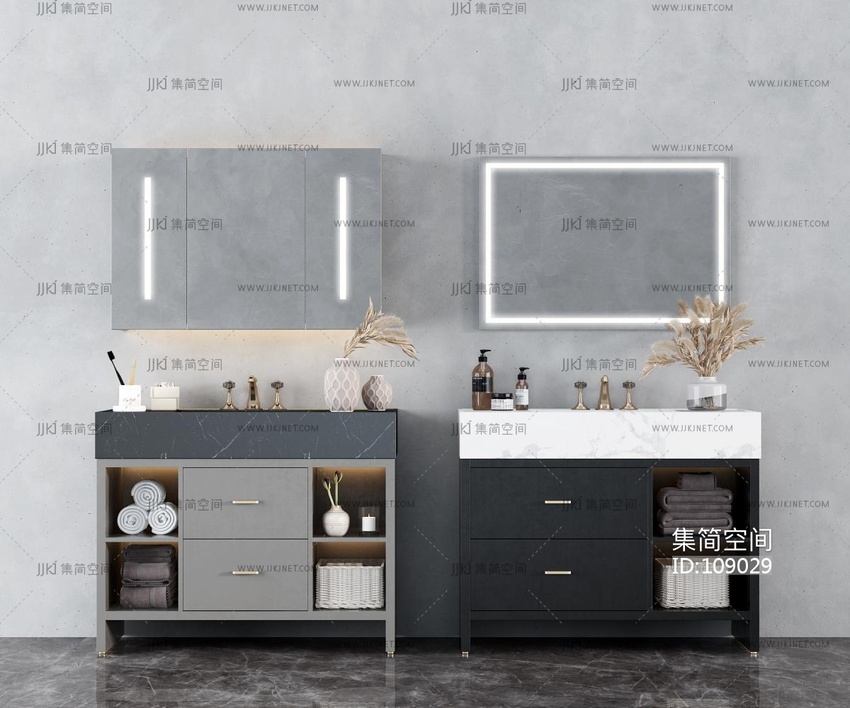 现代浴室柜洗漱用品组合 3d模型下载 [模型ID:109029]