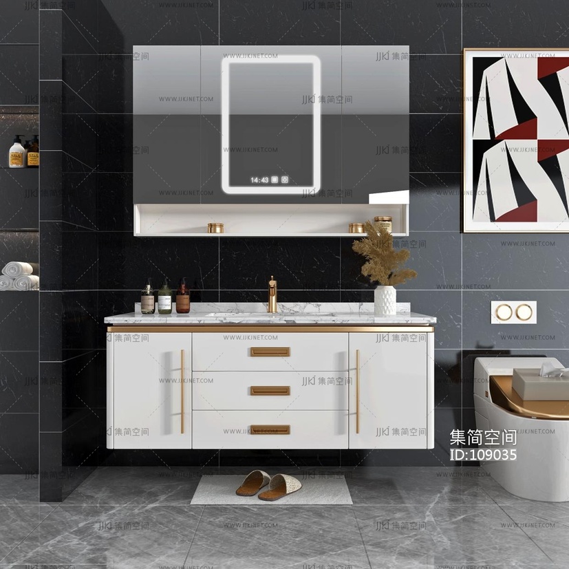 现代浴室柜,现代洗手台组合 3d模型下载 [模型ID:109035]