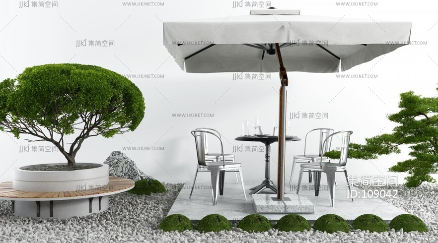 现代户外景观桌椅,遮阳伞, 3d模型下载 [模型ID:109042]