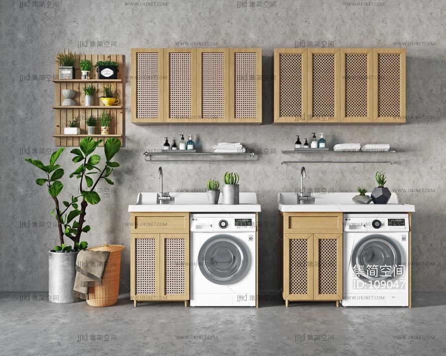 侘寂风阳台洗衣机浴柜组合 3d模型下载 [模型ID:109047]