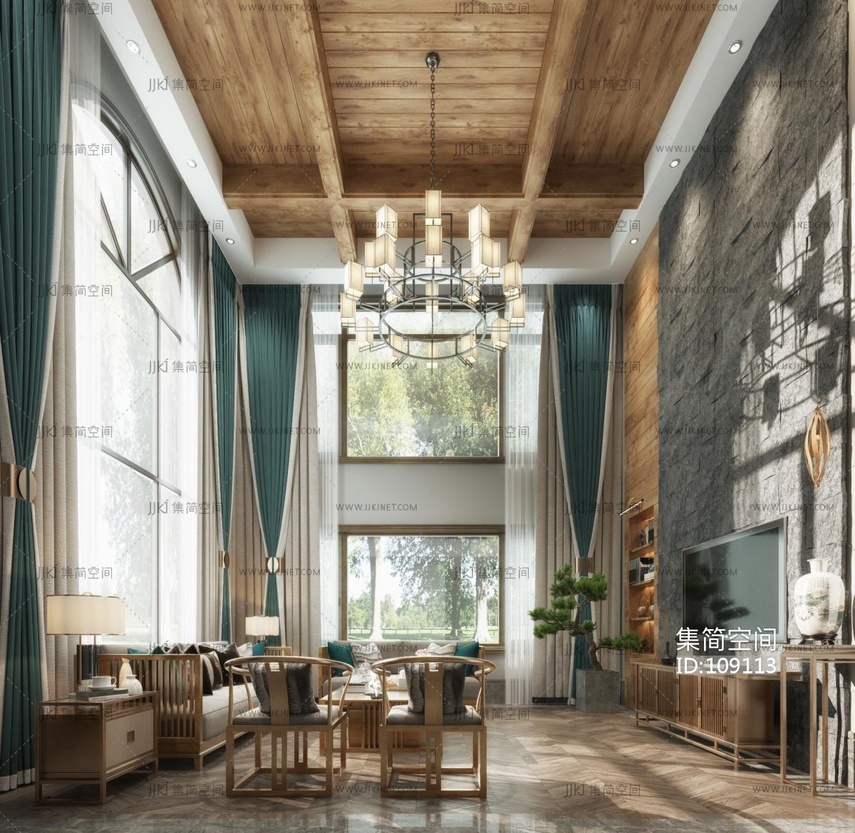 中式别墅客厅 3d模型下载 [模型ID:109113]