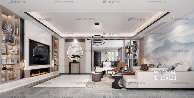 新中式客厅 3d模型下载 [模型ID:109123]