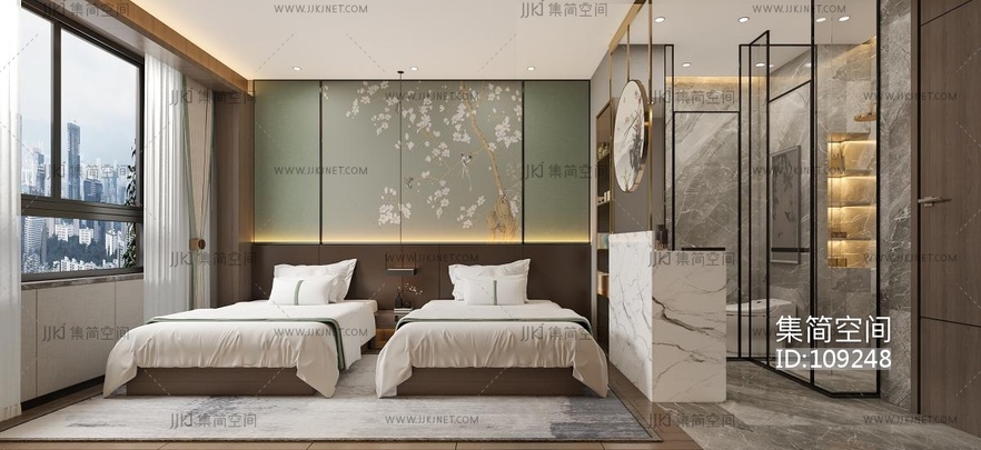 新中式酒店客房 3d模型下载 [模型ID:109248]