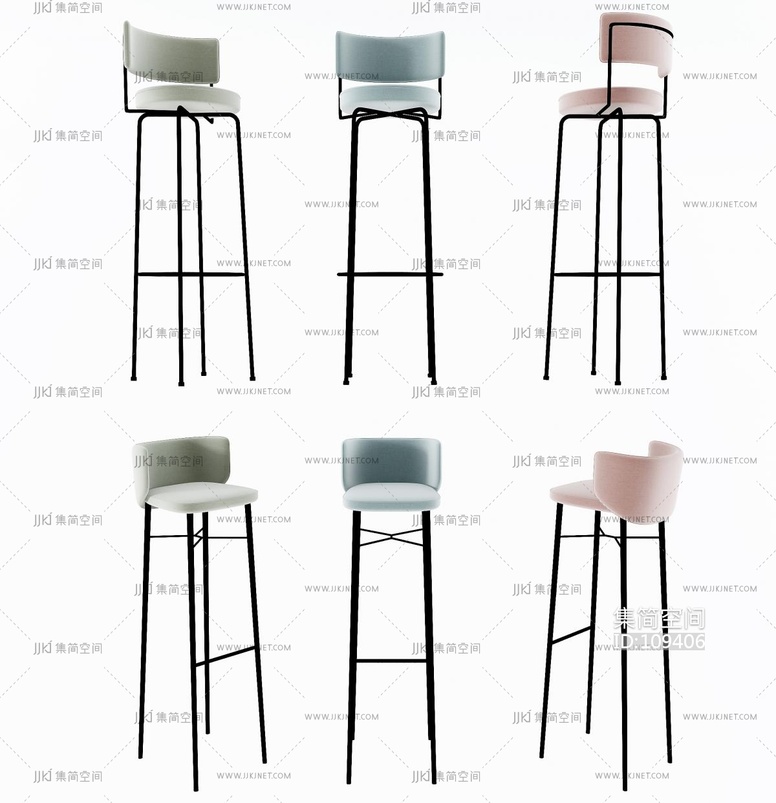 现代吧椅,高脚椅,椅子 3d模型下载 [模型ID:109406]