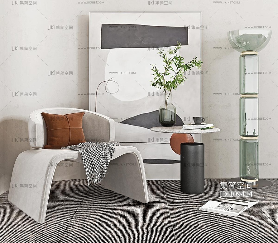 现代单椅边几组合 3d模型下载 [模型ID:109414]