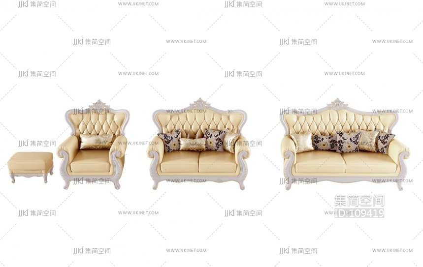 欧式古典雕花沙发组合,单人双人沙发 (2) 3d模型下载 [模型ID:109419]
